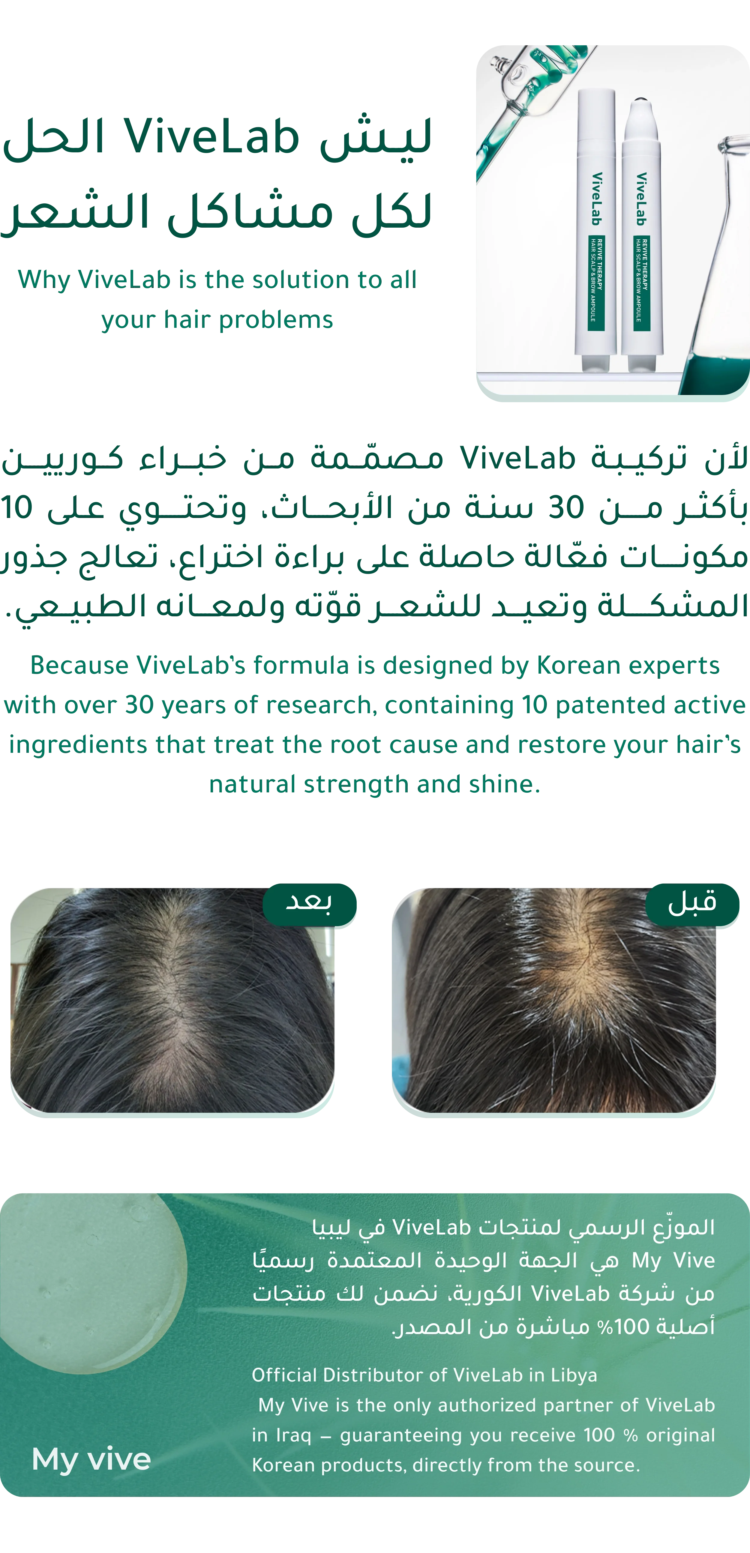 يستخدم مرتين في اليوميقلل التساقط وتبدأ تبان النتيجة من رابع يوم .يزيد من كثافة الشعر .يقلل من تهيج واحمرار فروة الرأس بعد الاستخدام الأول .يقلل من كمية الخلايا الميتة بعد الاستخدام الأول .